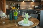 Die gut ausgestattete Küche enthält einen E-Herd, Backofen, Mikrowelle, Kaffeemaschine, Dolce Gusto Kapselmaschine, Geschirrspülmaschine, Wasserkocher, etc.
